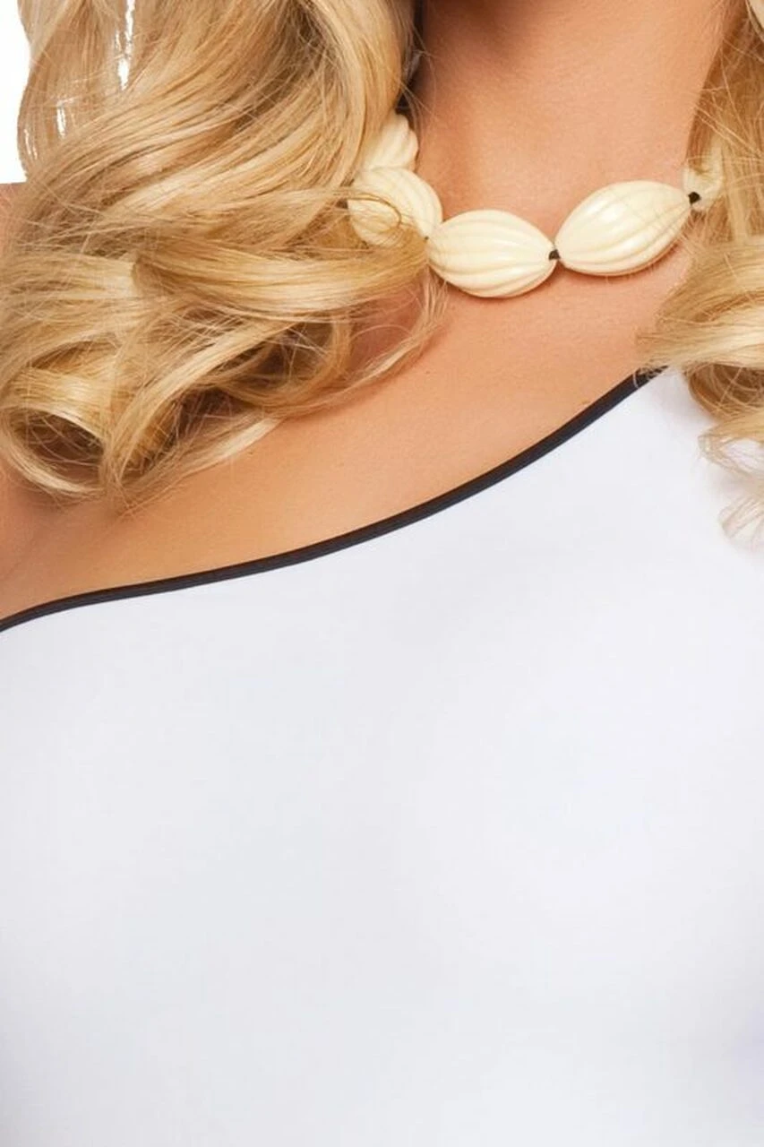 If prehistoric tennis was a thing, you’d certainly want to be wearing this adorable white Stonerock Wench Dress Costume, complete with a stone rock pearl necklace! This sexy single strap dress has a gathered dropped waist, built in petticoat and jagged hem with black piping. This is a fun Halloween costume but this dress is so cute you could even rock it at a summer or tennis party. Stone age style is back in the Stonerock Wench Dress Costume.