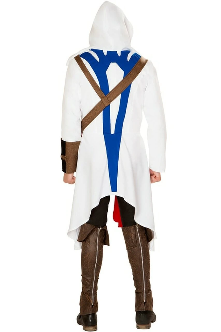 This Assassin Hero Men’s costume includes a hooded coat, sash, buckle, and arm band.