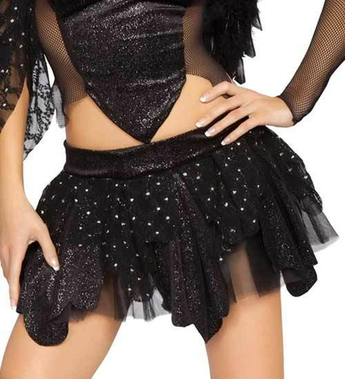 *Black Tattered Hem Skirt with Sprinkled Sparkle Leaves